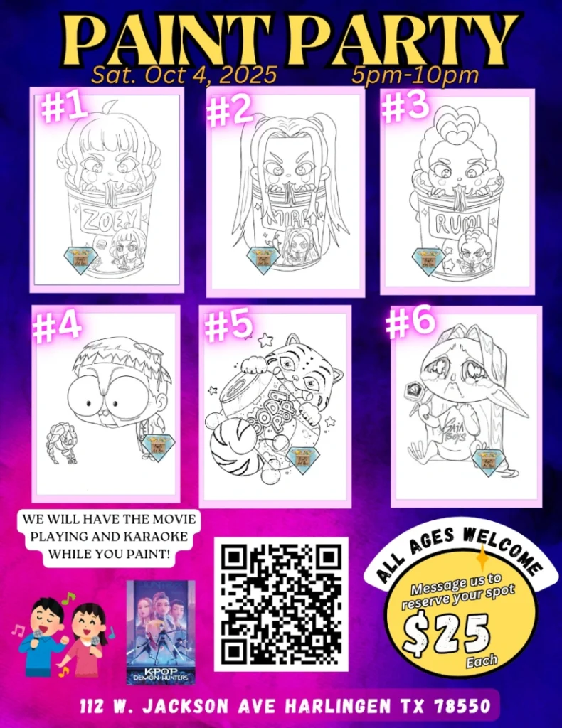 Thats right!! We will be having a Kpop demon hunter paint party on October 4, 2025 from 5pm-10pm!