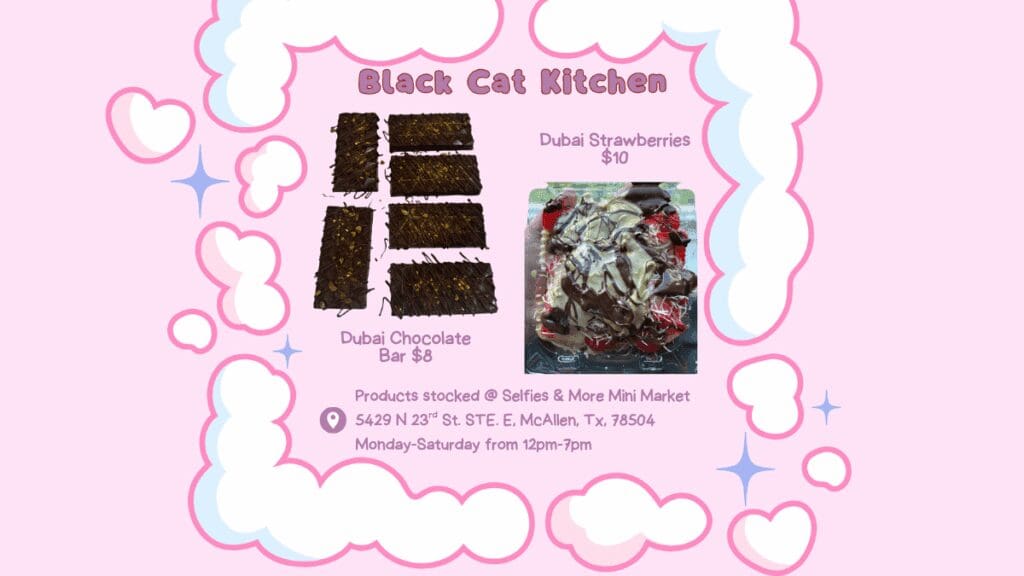 We sell Dubai chocolate bars, Dubai chocolate trays, Biscoff bars, biscoff trays, and looking to add more to the menu!